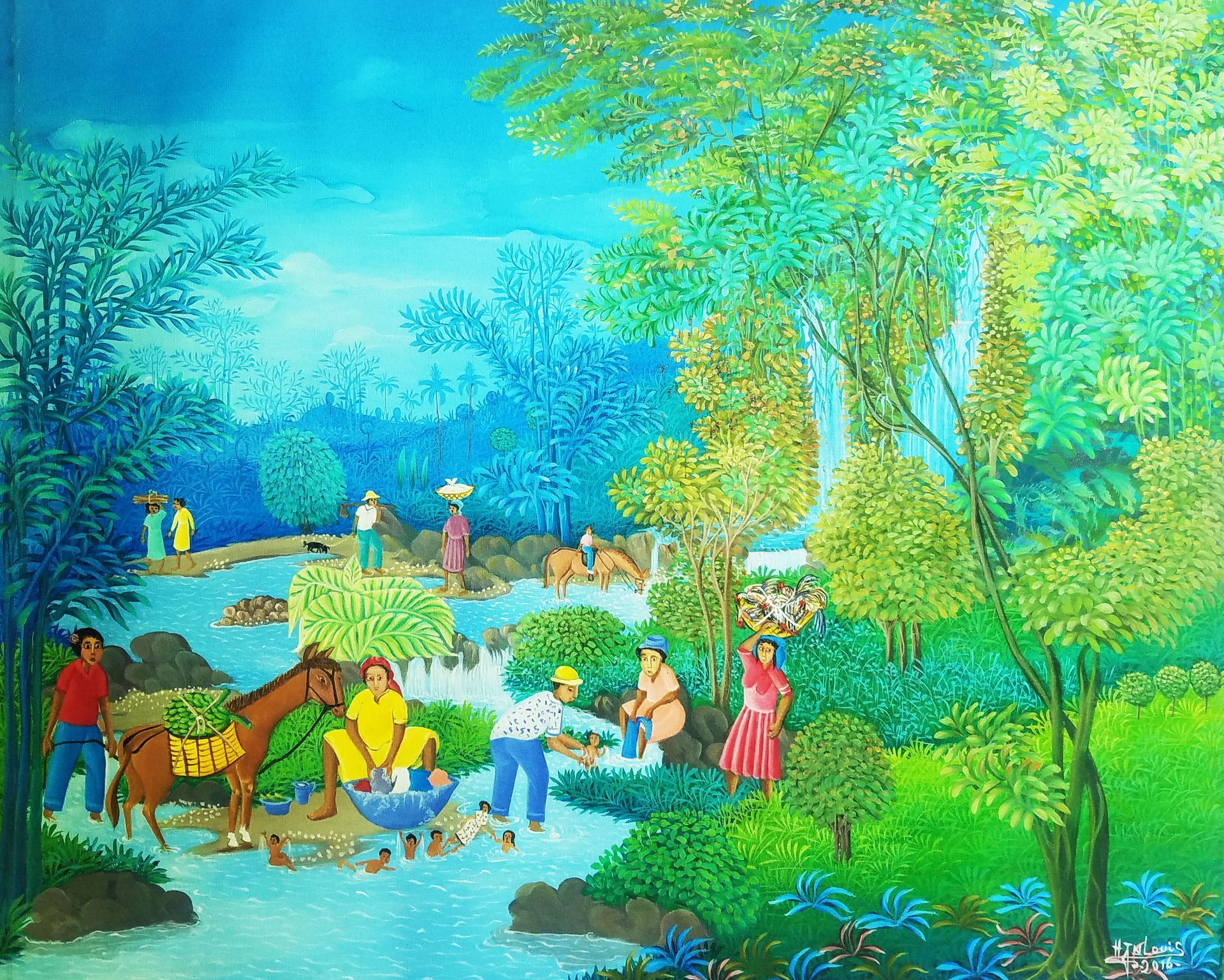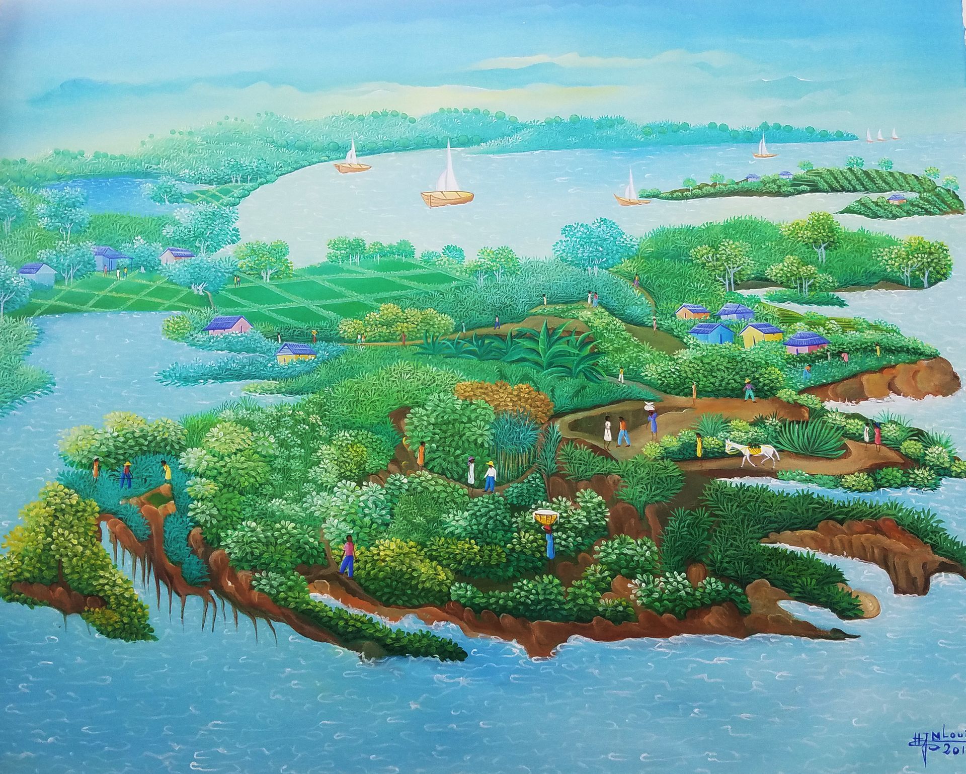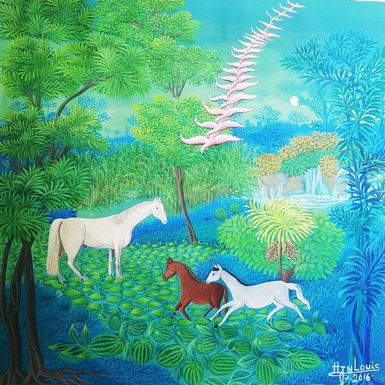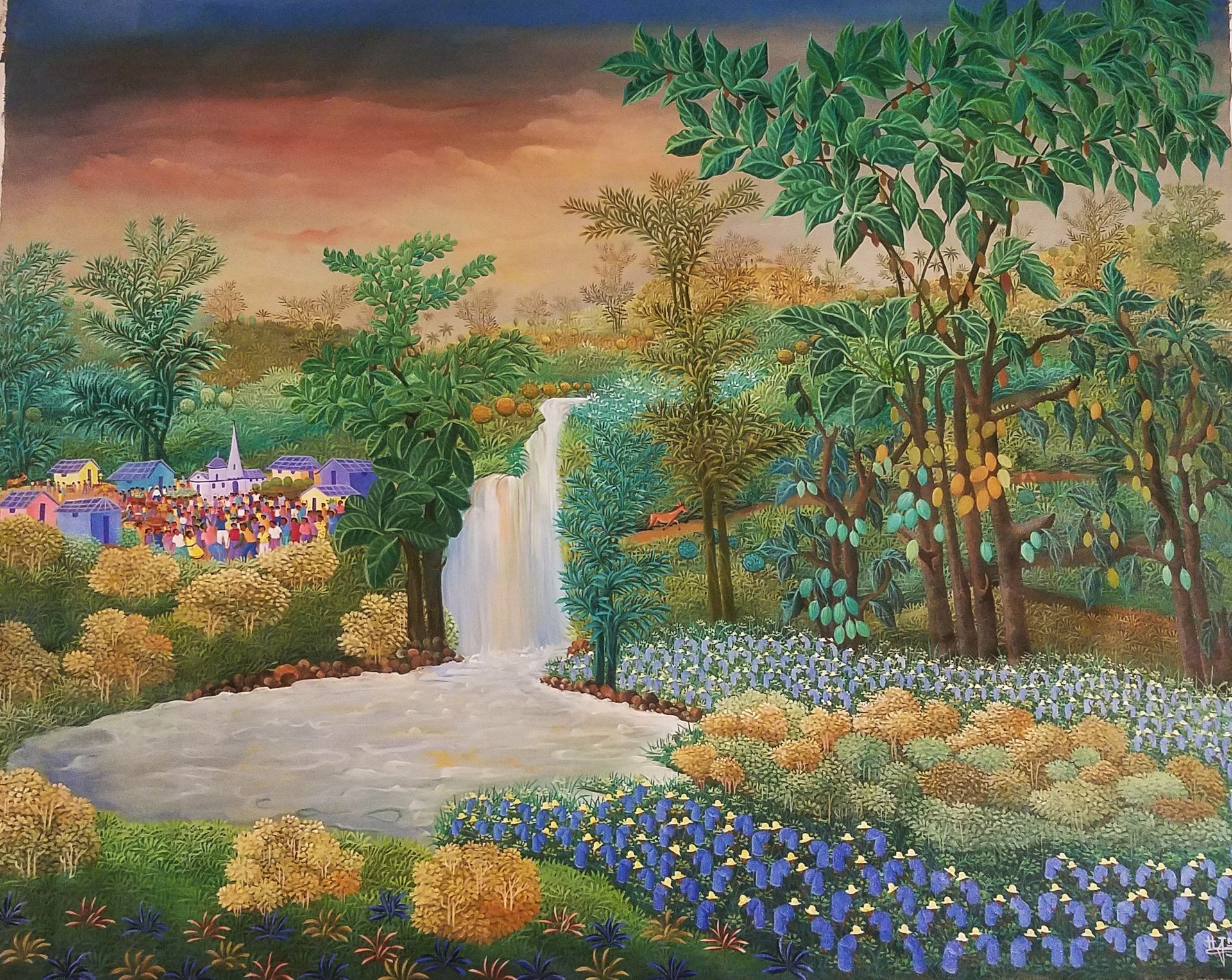 Henri was born in 1955 in Jeremie, the “Town of Poets” on the southwest tip of Haiti. He came to the Galerie Monnin in the mid-1970’s, the time when the movement known incorrectly as the School of Jacmel was evolving. This movement should be called the School of Monnin as it was the ateliers of that gallery on the Grand Rue that brought together the young artists of the third generation who worked and played together, and taught and learned from one another. With close encouragement from Michel Monnin, they developed brilliant techniques to combine with their bizarre imaginations.